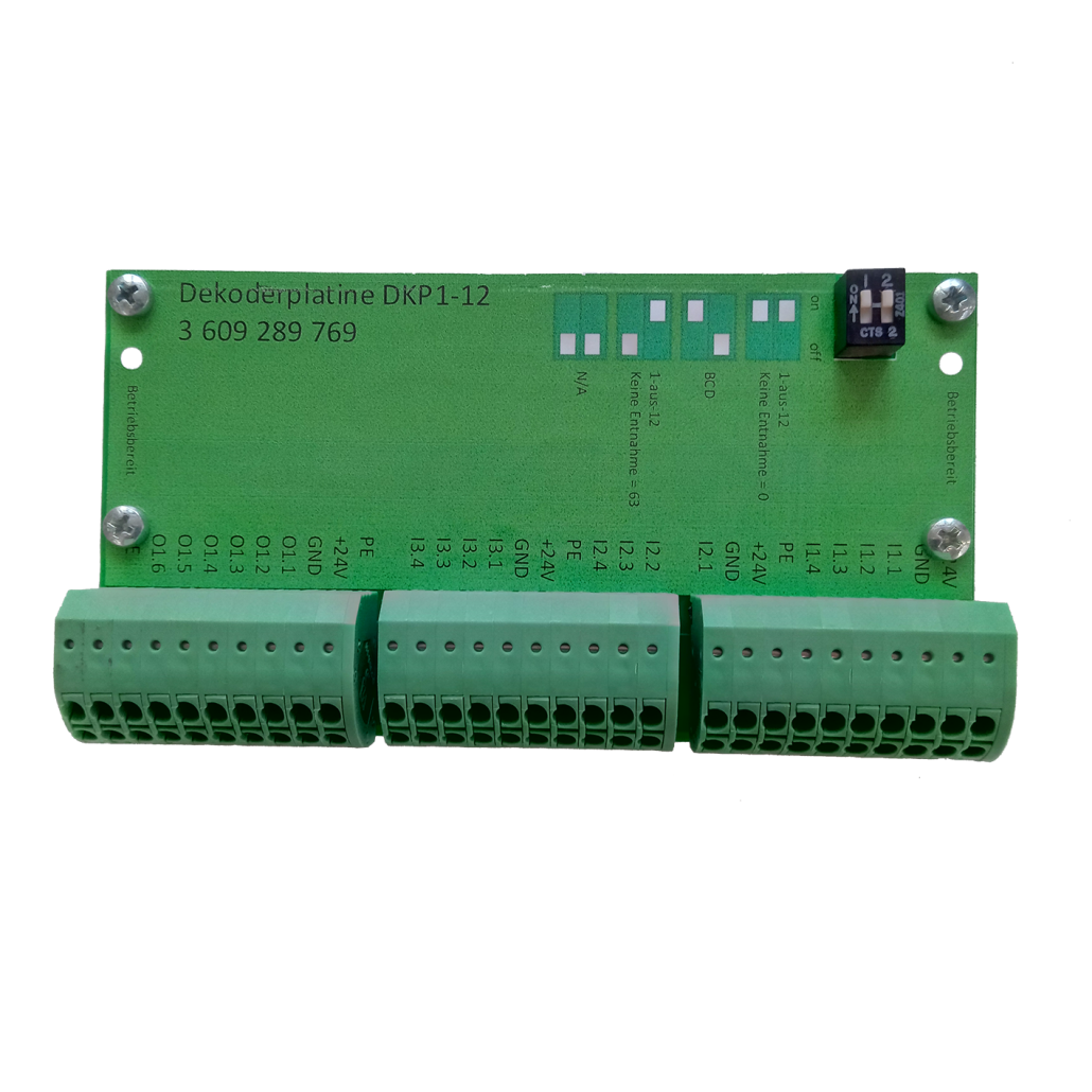 The DKP decoder boards convert signals from plug-in sockets, decade switches, or BCD keypads into a standardized dual code, enabling easy integration into industrial control systems and assembly processes.