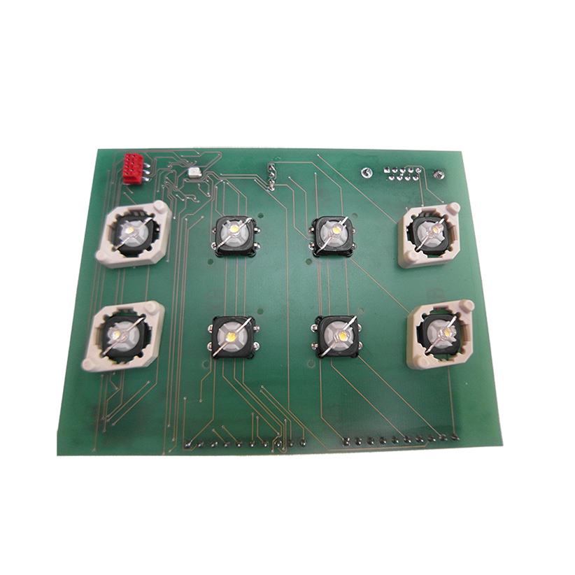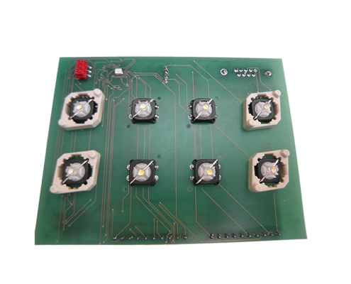 DKP2-BCD: Extended version for 8 outputs, implemented from BCD inputs; connection via two 10-pin pin headers, DSUB9 for programming and 6-pin Micro-Match connector.