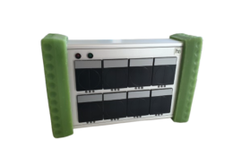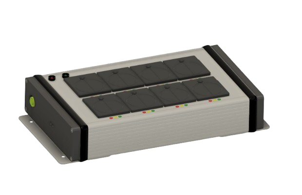 Each slot features three status LEDs (red, yellow, green) for operator guidance and error indication.